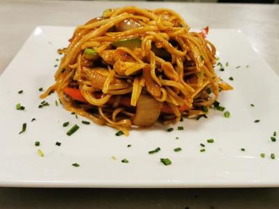 TALLARINES AL WOK CON POLLO Y VERDURAS
