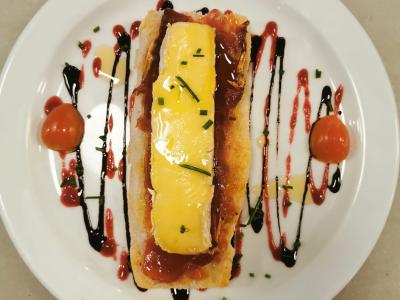 TOSTA DE JAMÓN IBÉRICO, QUESO BRIE Y MERMELADA DE TOMATE